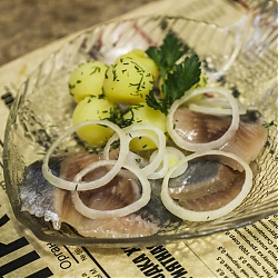 Традиционная ленинградская закуска- свежая корюшка, обжаренная до золотистой корочки по фирменному рецепту