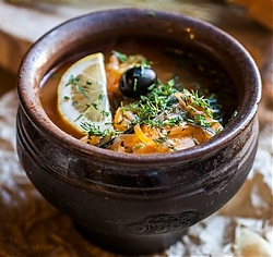 Холодный летний суп, может быть приготовлен, по вашему желанию, с судаком или традиционно с колбасой